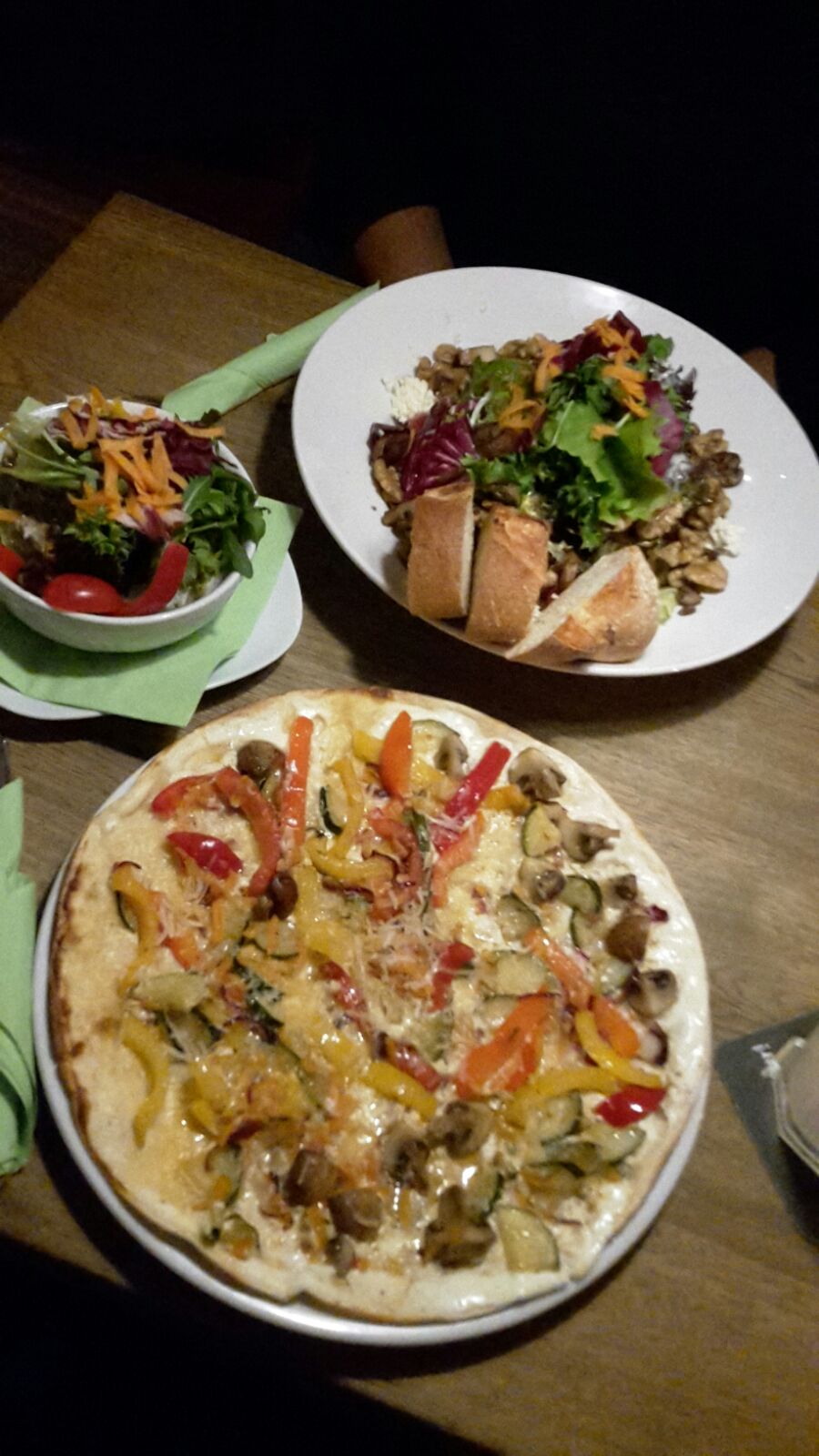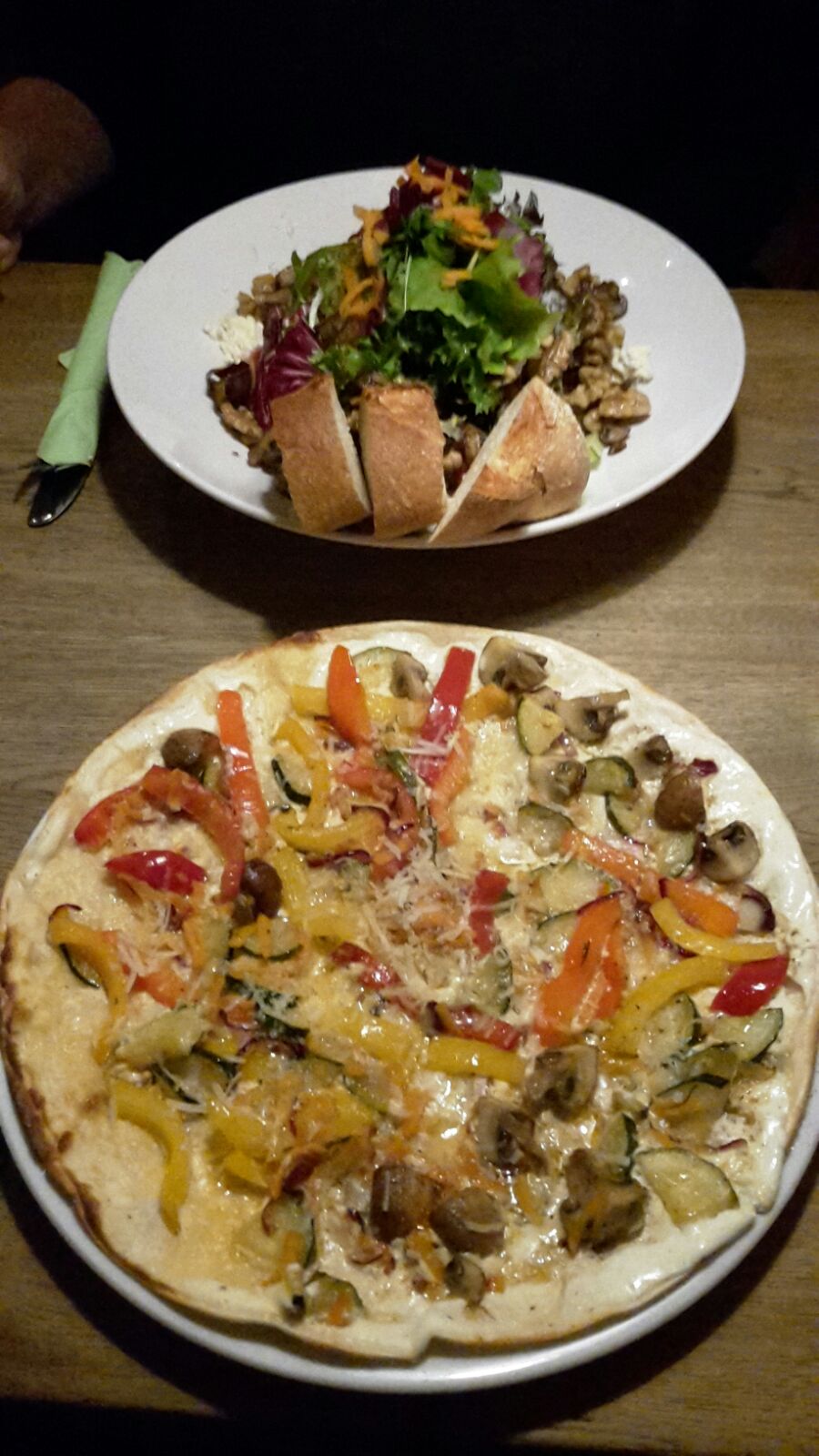 I ate the Feta Salad and my friend the veggie flame cake and a little side salad. Superb! The portions are huge, delicious and the prize is reasonable. Everything tastes fresh and homemade.