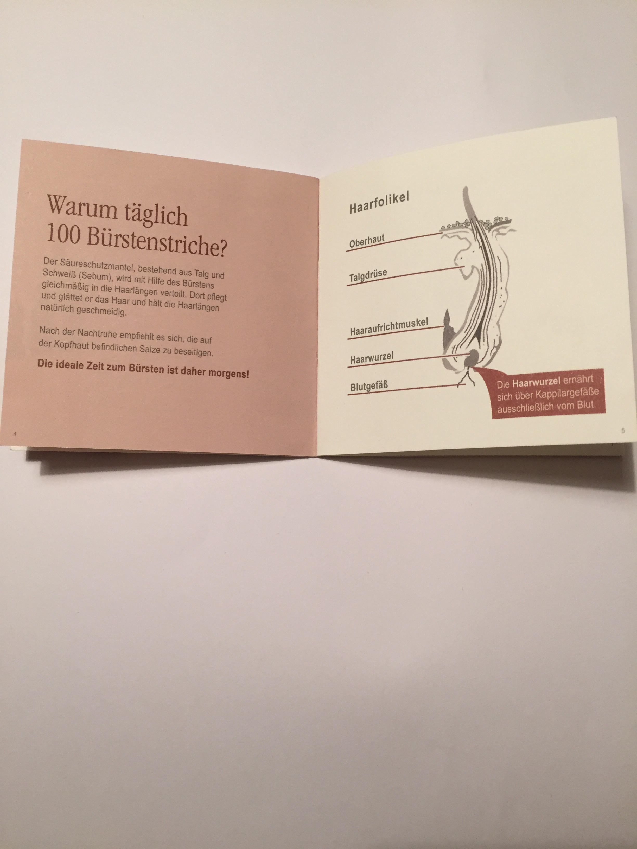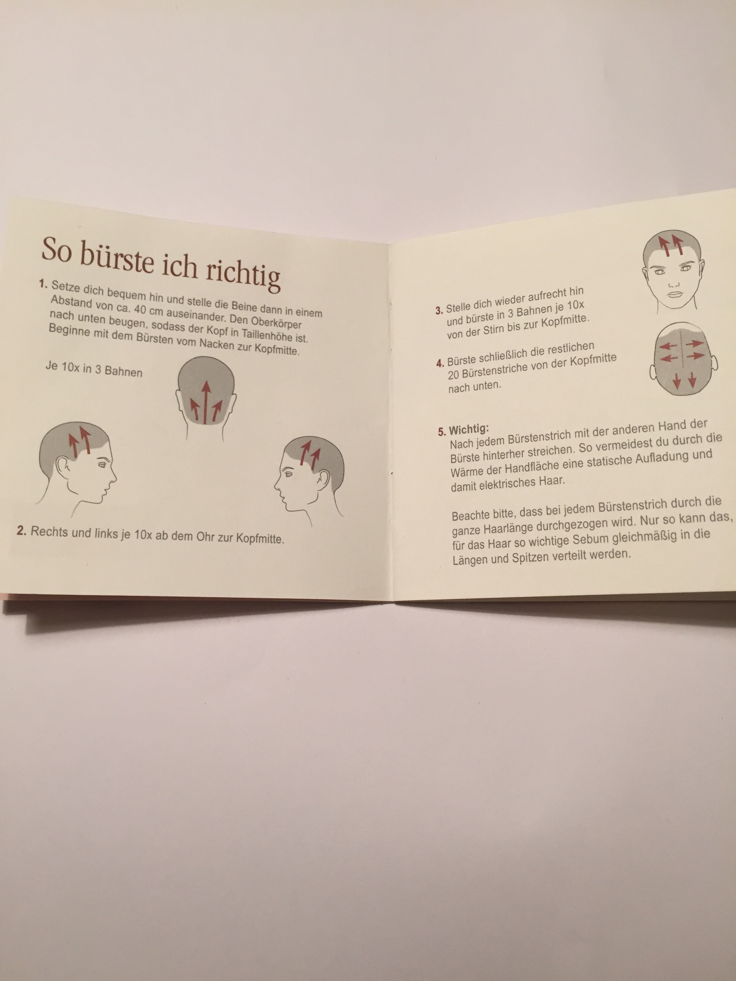 I kept on searching and tried new treatment, conditioners and whatnot but was never really happy with my hair. Until I stopped using anything. Yep, water only. I did this for a while and initially it is really tough. For a week or so my hair was so greasy and dull that I wanted to stop this little project and go back to my Panthene ProV. For whatever reason I stuck with the water-method and my hair improved. Then I discovered my hair dresser and she opened my horizon to new methods. Nicole Reiter uses CulumNatura Products that I have never heard of before. She also told me about the benefits of brushing my hair the right way with a good brush – A Boar Bristle Brush.