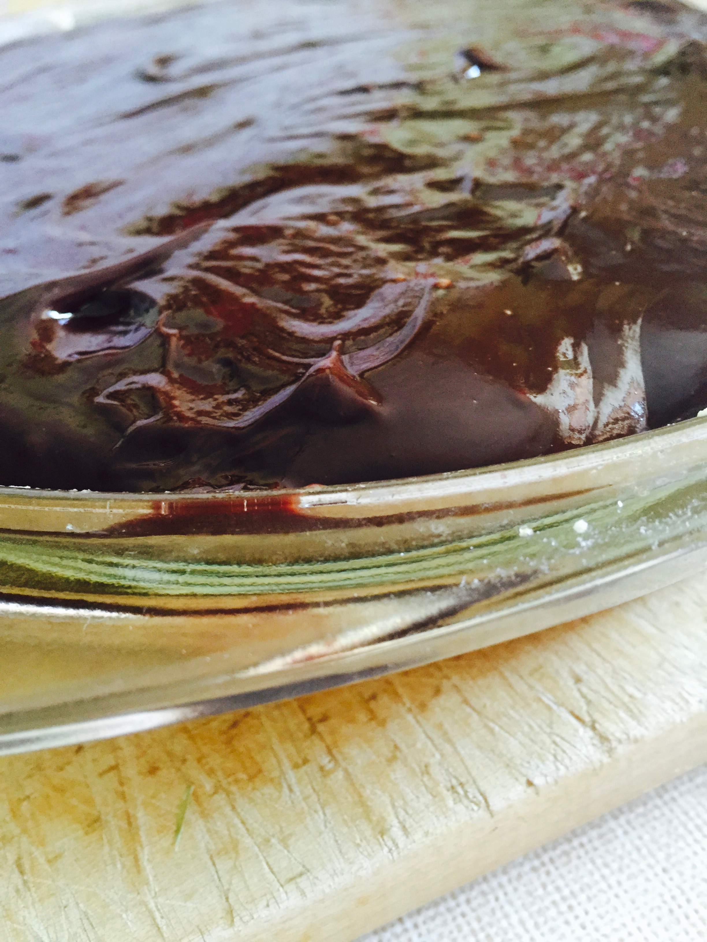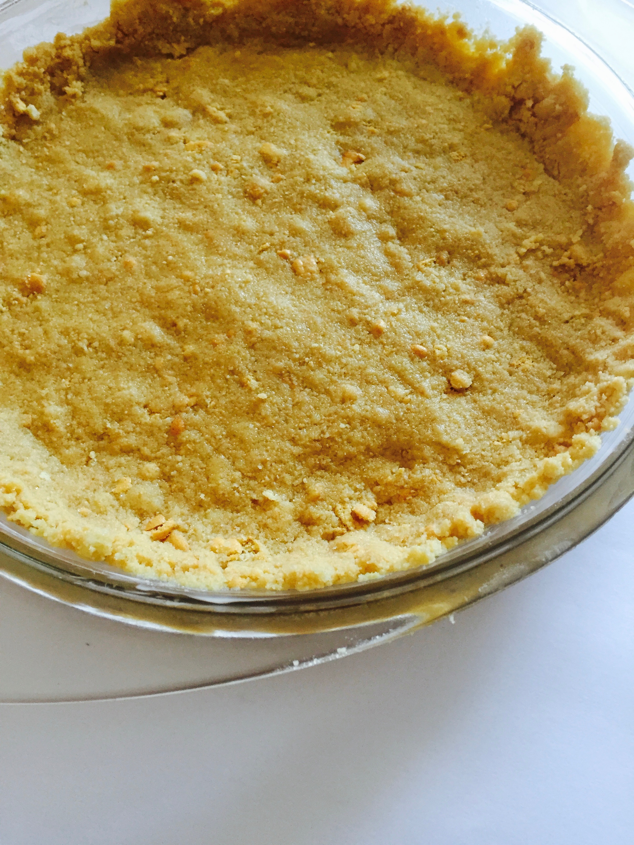 Before you start, this is what you will need: a tart-pan; I used 9-inch/1-inch tall and found that this is definitely the right size. If you do want to use a standard pie pan you might have to double the filling and chocolate which you actually don’t really want. [little reminder of Mr. Stroke here, hah!] Also, use parchment paper instead of greasing the pan. I had difficulties removing the cake from the tart pan afterwards! I used Walkers Shortbread just because they are so good. You can use any cheaper variety of butter cookies in fact.