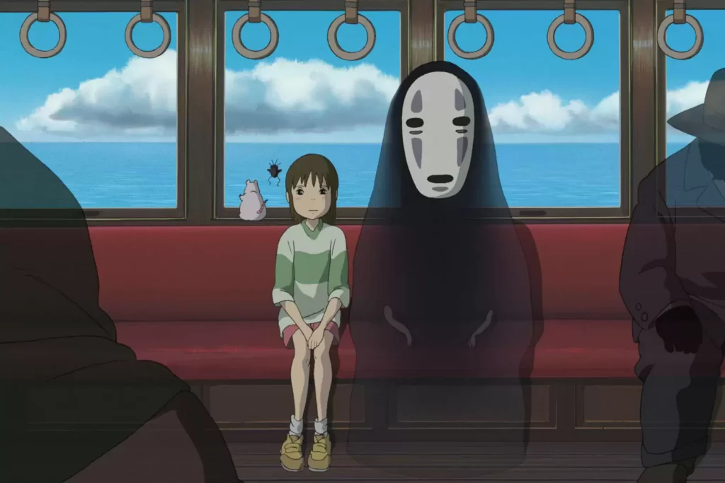 Spirited Away is most known for the character with the least lines: a masked ghost who can conjure gold. He has no backstory, we only know that he is banned from entering the bathhouse. Chihiro, out of kindness, lets him in. No-Face is refused service at first, but the staff quickly compromise their values upon seeing his gold. They serenade him, “Welcome the rich man. He’s hard for you to miss. His butt keeps getting bigger, so there’s plenty to kiss!” while they fight for the gold nuggets that plop out of his fat hands. Then, he devours the workers in despair when he realizes their kindness is bought, and only Chihiro is genuine.